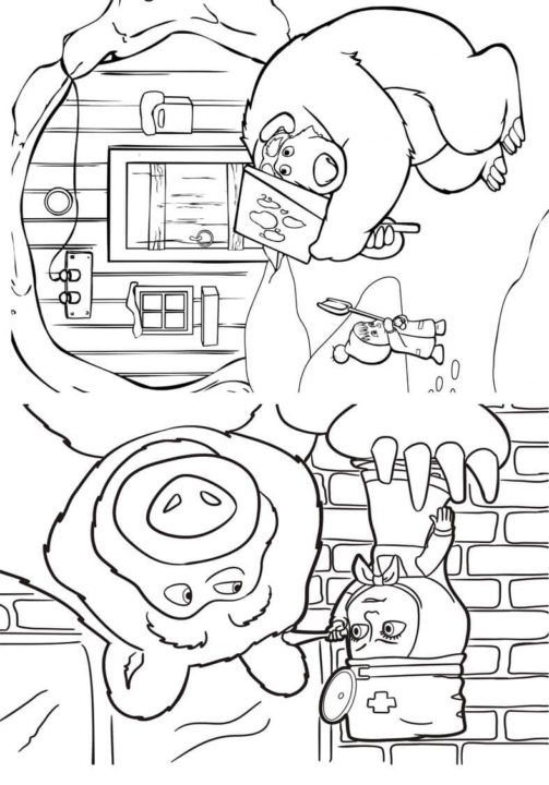 maşa ile kocayı boyama sayfası